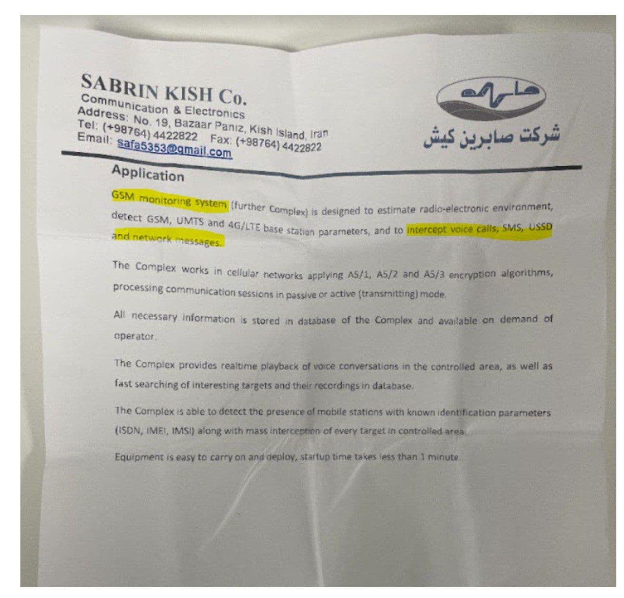 در رأس این سبد، سامانههای مانیتورینگ GSM قرار دارند که برای رهگیری شبکههای GSM، UMTS و 4G/LTE طراحی شدهاند و قابلیت شنود مکالمات صوتی، پیامک، USSD و پیامهای شبکهای را دارند. این سامانهها میتوانند بهصورت passive یا active عمل کنند و حتی مکالمات را بهطور زنده بازپخش و آرشیو کنند. ذکر صریح الگوریتمهای رمزنگاری A5/1، A5/2 و A5/3 در اسناد، نشان میدهد که این تجهیزات برای محیطهای امنیتی و اطلاعاتی طراحی شدهاند، نه استفادههای تجاری یا قانونی محدود.