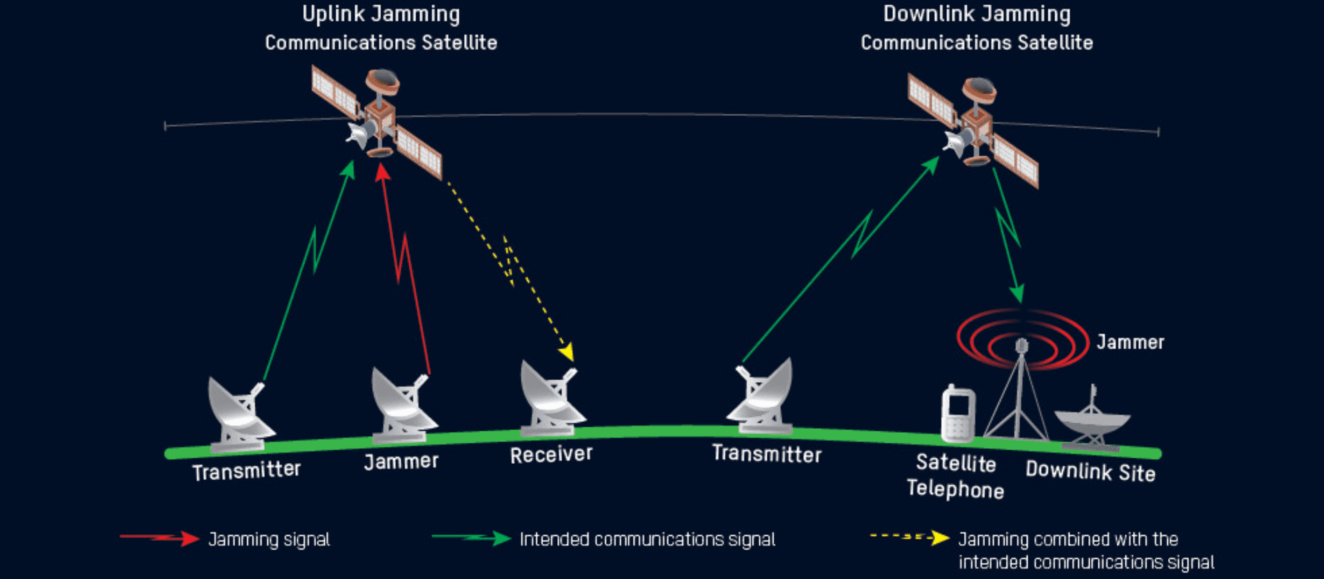 از نظر فنی، جمینگ به معنای تزریق سیگنالهای مزاحم و پرقدرت به یک باند فرکانسی مشخص است، طوری که سیگنال اصلی دیگر قابل دریافت، رمزگشایی یا استفاده نباشد. این اختلال میتواند به روشهای مختلف انجام شود؛ از ارسال نویز پهنباند برای کور کردن کامل یک بازه فرکانسی، تا جمینگ هدفمند که فقط یک سیگنال خاص مانند GPS، ارتباطات ماهوارهای یا لینک داده را مختل میکند.